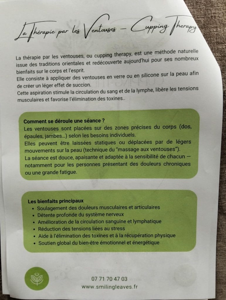 Deux nouvelles personnes avec des parcours intenses également sont venues découvrir notre association, tandis qu’Olga dispensait son art sur 4 adhérentes chacune leur tour (la cupping therapy / les ventouses).