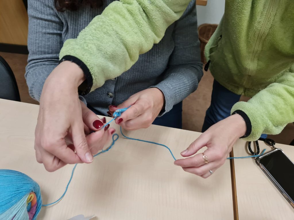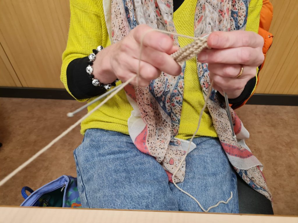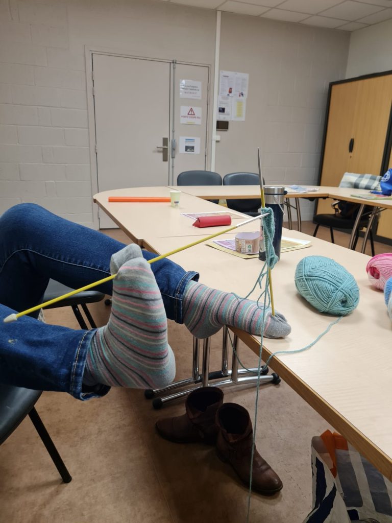 L’atelier a débuté par un moment de partage où chacune a évoqué sa « météo intérieure » de la semaine. Ensuite, Sandrine a animé l’atelier, où elle nous a guidé dans l’apprentissage du point mousse, en expliquant les bases pour démarrer des mailles. Après avoir maîtrisé cette technique, elle a également expliqué comment finaliser un tricot, apportant des conseils pratiques pour aller jusqu’au bout de la réalisation.
