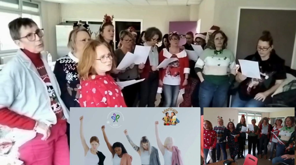 Oui la régie, parce que maintenant, on a une chorale ! Entre karaoké et hommage à nos marraines en reprenant le titre qu’elles ont composé pour nous « les invisibles » … bon, on est désolées, on a des voix de crécelles, on a un peu massacré Miss Terry, alors que la pauvre, elle souffre déjà assez ….