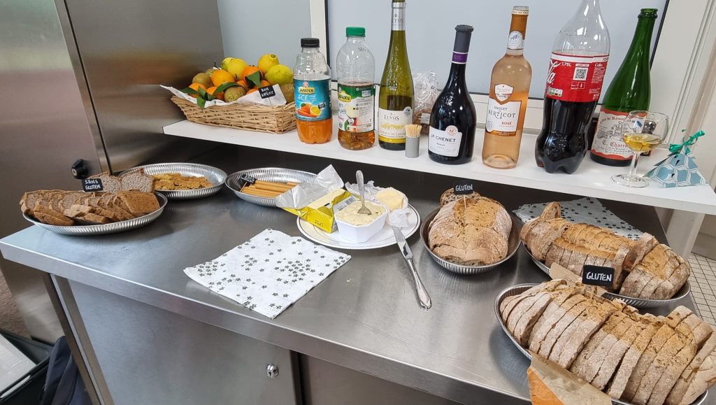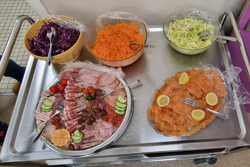 Un grand merci pour l’organisation (achats des légumes, des fromages dans des fermes, du pain chez un petit artisan boulanger, la viande dans une petite charcuterie thourottoise, le fumage du saumon maison, on a visé dans le local au maximum) et les participations (lavage, épluchage, rapage … ) aux repas, la décoration, la vaisselle, le ménage, la régie …