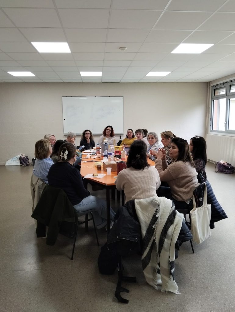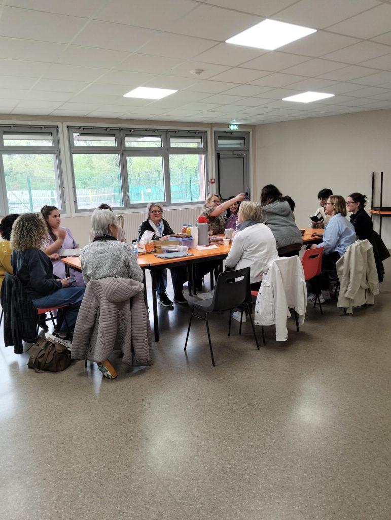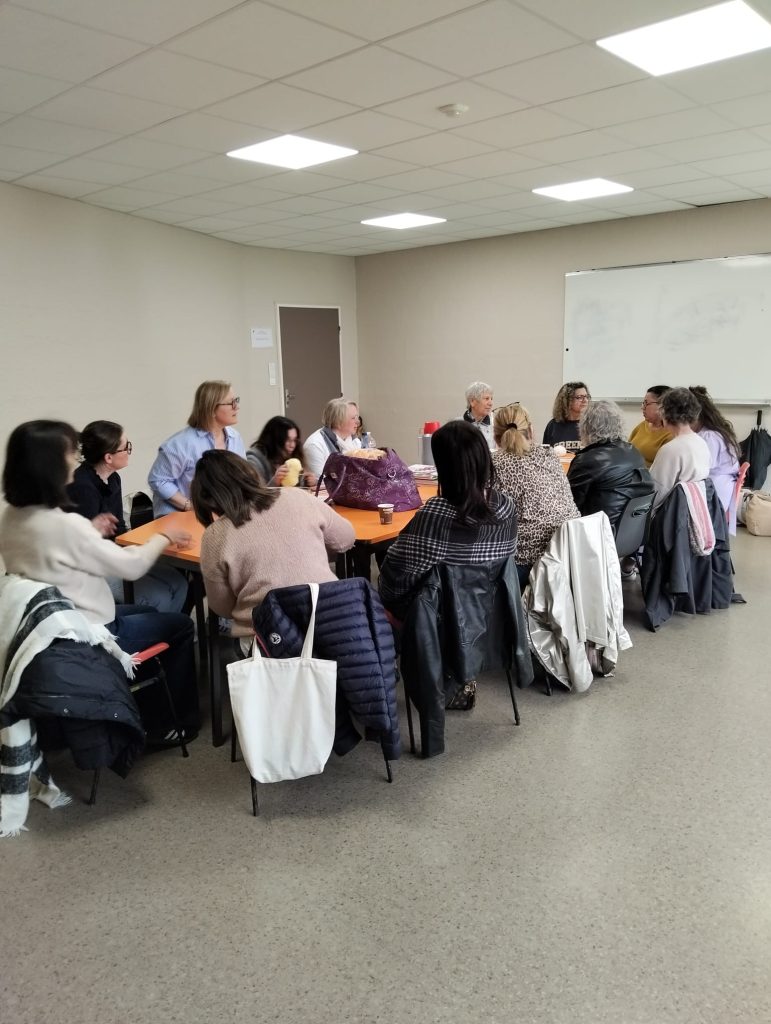 Nous sommes ravies de cet après-midi passé avec nos adhérentes (et bienvenue à la nouvelle 🙂 ), nous les remercions pour leurs covoiturages, leurs gâteaux, leurs boissons, leurs idées, leur bienveillance, leur aide pour l’installation et le rangement … Sans oublier, Alice, étudiante, fille d’une de nos adhérentes, venue nous proposer de porter un projet pour récolter des fonds pour notre association.